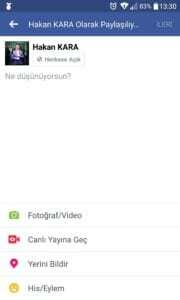 Buna benzer işlemi Facebook tabletiniz üzerinden de yapabilirsiniz.