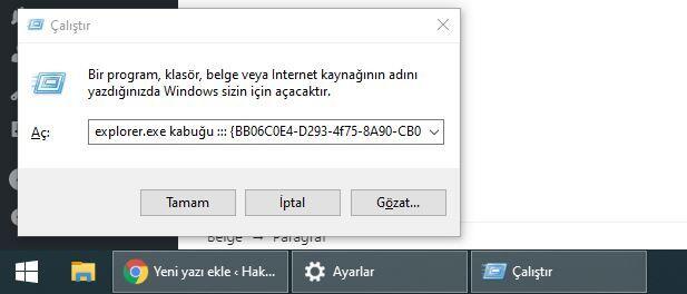 Bu kodu yazdığınızda aşağıda gösterildiği gibi klasik denetim masası panelini açılmalıdır: