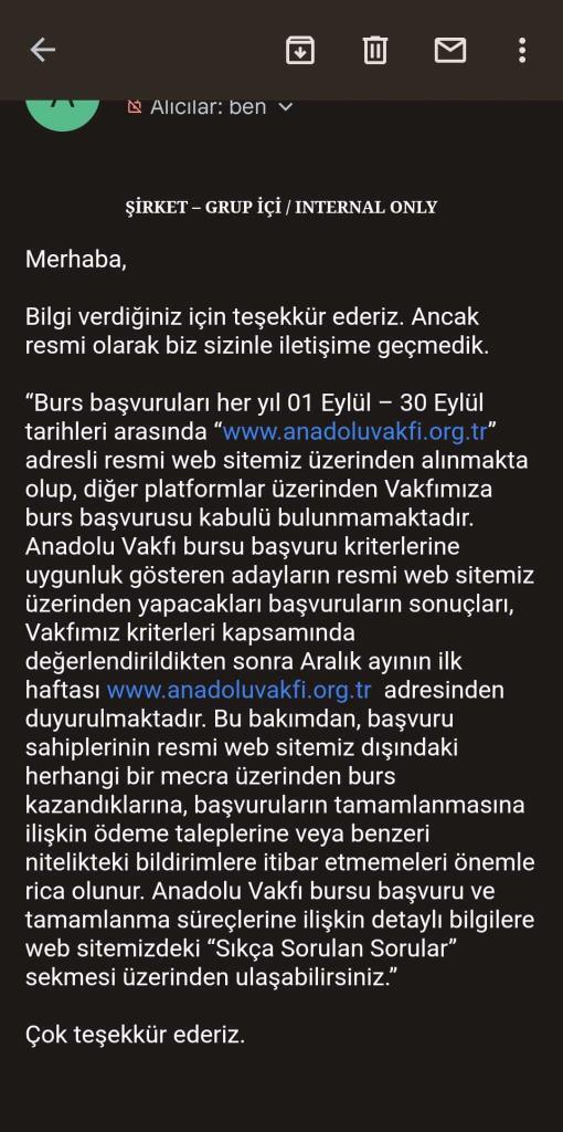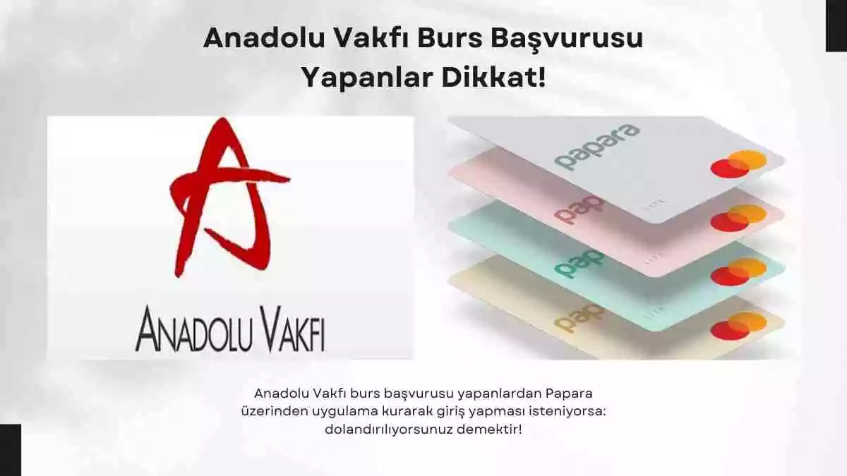 Anadolu Vakfı Burs Başvurusu Papara Dolandırıcılığına Dikkat