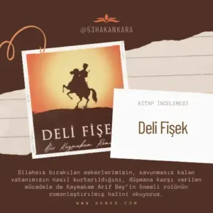 Yarbay rütbesi ile İzmir Merkez Komutanlığına atanan Arif Bey’in İzmir’in işgaline direnme konusunda yaptıklarını, insanları nasıl organize ettiğini, hangi çatışmalara girdiğini okuyarak ilerliyoruz Deli Fişek romanında… Kurtuluş Savaşı’nda Afyon ve Havalisi Kuva-i Milliye Komutanı. Afyon ve çevresinde Milli Direnişin öncülerinden ve milli mücadelenin en buhranlı günlerinde, iç isyanların bastırılmasında büyük emeği geçen Arif Bey, Osmanlı ordusunda görev yaptığı yerlerde oldukça tecrübe kazanmış, İzmir’in işgali sonrası elinden geleni yapmış, önemli bir isim. Bu ismin adının yaşatılması, yaptıklarının romanlara konu olması önemli: ancak, böylesine önemli bir ismin, roman yazma uğruna yitirilmesine de göz yumamayacağız diye düşünüyorum.
