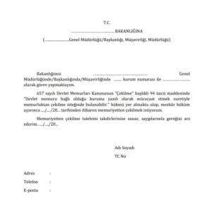 Devlet Memurluğundan İstifa dilekçe örneği de aşağıya ekliyorum: