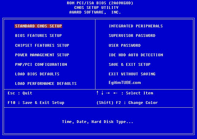 1. Bilgisayarınızda BİOS ekranına giriş yapın. ( Bu genelde DEL tuşuyla bilgisayar açılırken yapılır. )