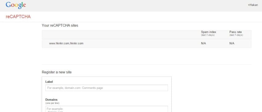 https://www.google.com/recaptcha/intro/index.html sayfasından recaptha sayfanıza giriş yapın. Google’ye tanıttığınız tüm siteleri silin. Sonra sitenizi tekrar fotoğrafta göründüğü gibi oluşturun.