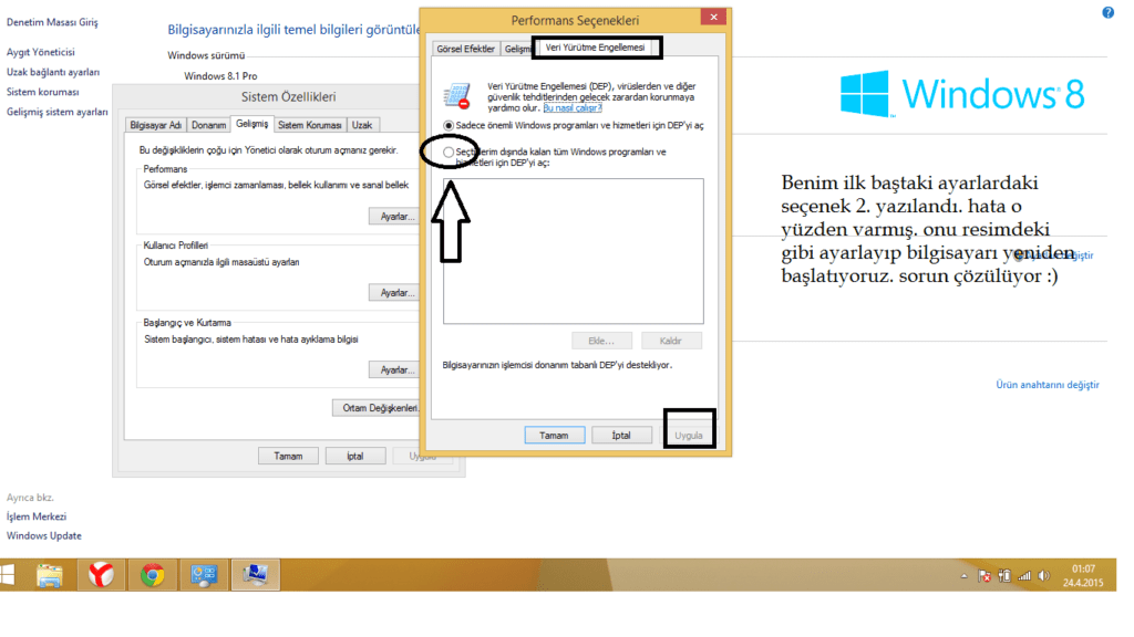 Windows 7 veya Windows 8 kullananlar aşağıdaki fotoğrafta yer alanları deneyebilirler.