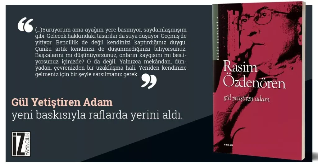 Gül Yetiştiren Adam adlı eser, benim çok geç tanıştığım ve kütüphaneme kitaplarını yeni yeni eklemeye başladığım Rasim Özdenören tarafından kaleme alınan bir edebiyat romanı. İz Yayıncılık tarafından piyasaya sürülen eserin elimde 43. baskısı (2021 tarihli) bulunmaktaydı. İlk baskısını 1985 yılında yapan eser hali hazırda bir çok kitap satış sitesinde en çok okunan kitaplar arasında ilk 500 arasında yer alıyor. Yedi Güzel Adam’dan biri olan yazarın ilk ve tek romanı olduğunu da ekleyelim.