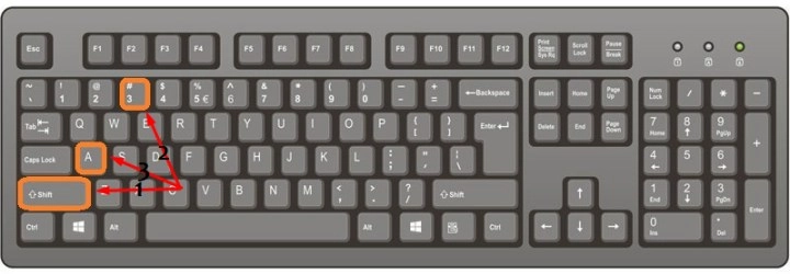 - Klavyede şapkalı a yapmak için öncelikle shift tuşu ile üst sıradaki 3 tuşuna aynı anda basın. Daha sonra a harfini tuşladığınızda şapkalı a yani â yazılacaktır. Büyük şapkalı A (Â) ise Caps Lock kilidi açıldıktan sonra, shift + 3 + a tuşlarına aynı anda basılarak yapılır. Buradaki 3, num lock kısmındaki numaralar arasında bulunan 3 değil, resimde görüldüğü gibi üst kısımda bulunan ve yanında bazı klavyelerde ^ ve bazı klavyelerde # işareti bulunan 3 numarasıdır. Dikkat edin, karıştırmayın!