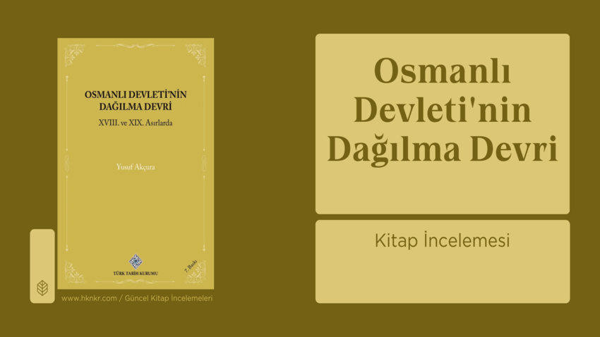 Osmanlı Devleti’nin Dağılma Devri XVIII. ve XIX. Asırlarda adlı Yusuf Akçura’nın eseri, devletin 18. yüzyıl sonu ve 19. yüzyıl başındaki kritik dönemini kapsamlı bir şekilde ele alıyor. Kitabın başında tarih yazıcılığında dönemlere ayırma geleneğine vurgu yapılarak: “Tarih yazanlar, umumi ve hususi tarihleri, mümeyyiz vasıflarına bakarak, birtakım devirlere ayırırlar.” ifadesiyle Akçura, Osmanlı tarihinin de benzer şekilde bölümlere ayrıldığını hatırlatarak eserine başlıyor. Türk Tarih Kurumu yayınlarından okuyucuyla buluşturulan eserin elimde 2023 tarihli 7. baskısı bulunuyor (eser ilk baskısını 1940 yılında yapmış). “Era of the Disintegration of the Ottoman Empire XVIII. and XIX. Centuries” şeklinde İngilizce başlığına da kitapta yer verilmiş. Eserde ayrıca tarihsiz bir tanıtım yazısı var ki bu kısımda şu ifadelere yer veriliyor: