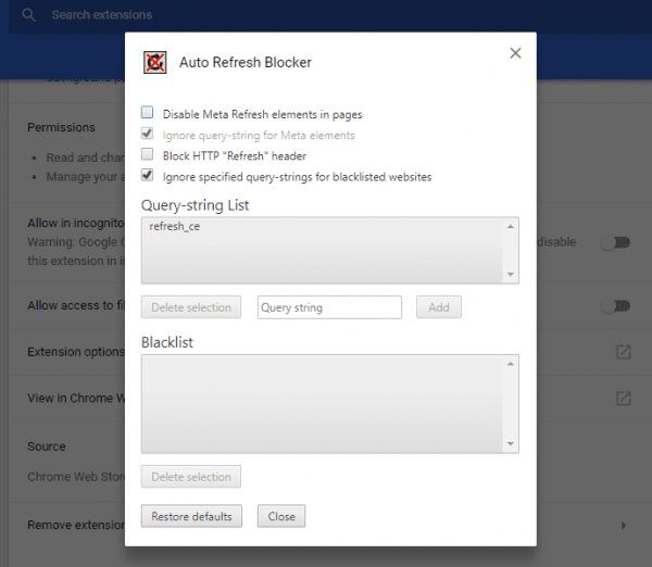 Tarayıcınızın URL kısmına chrome://extensions yazın veya tarayıcı sağ üst tarafta bulunan Seçenekler > ayarlar kısmına giriş yaparak, uzantı ayarları kısmında “Auto Refresh Blocker” adlı uzantıyı aktif hale getirin. Uzantıya ait “Details” yani Ayrıntılar kısmına tıkladığınızda açılan kısımda “Uzantı Ayarları” kısmına giriş yapın, açılan ekranda “Disable Meta Refresh elements in pages” seçeneğinin yanında bulunan “Closed” seçeneğini seçin veya seçili olmasına dikkat edin.