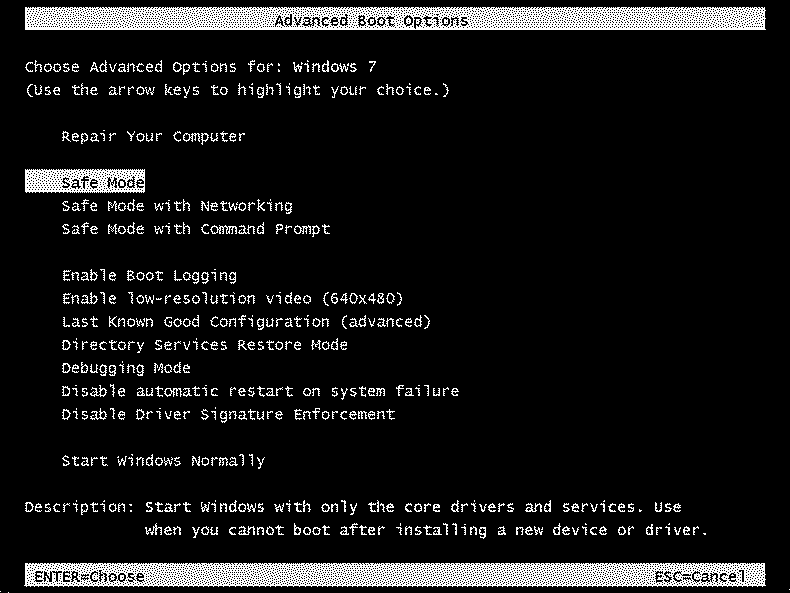 2. Karşınıza gelen Advanced Boot Options sekmesi açılacak buradan Safe Mode bölümünü tıklayın.