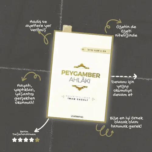 Peygamber Ahlakı adlı kitap Semerkand Yayınları tarafından Gazali Kitaplığı serisinden çıkarılan 20. eserin adıdır. Hüccetü’l-İslâm olarak bilinen büyük İslam bilgini İmam Gazali (kitapta bu şekilde günümüz Türkçesine göre yazılmış ama doğrusu bence Îmam-ı Gazzâlî şeklinde olmalıydı) tarafından kaleme alınan eser, yaklaşık 96 sayfalık hacmi küçük ama anlattıkları ile büyük bir kitap. Bu yazıyı hazırladığım sıralarda güvenilir kitap siteleri üzerinde yaklaşık 68 TL gibi bir fiyata satın alabileceğiniz eserin farklı bir yayınevinden Peygamberimizin (Sav) Edeb ve Ahlakı başlığı ile bir baskısı daha bulunuyor. Araştırma – İnceleme ve Din türünde nitelendirebileceğimiz eser biz okuyuculara, efendimiz Hz. Muhammed’in hayatından kısa kesitler sunuyor.