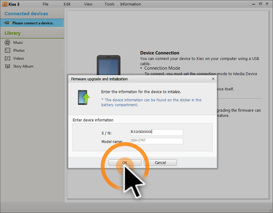 Modeli girip ok tuşuna bastığınızda yukarıdaki fotoğraftaki ekran gelecek. S/N kısmını doldurun yine not aldığınız rakam ve harfleri. sonra ok tuşuna basıp yönergeleri takip edin. bu sırada telefonunuzun bağlantısını koparmayın, internetin olduğundan da emin olun. Yazılımı indirip kurmaya başlayacaktır. Sizden ek bir şey isterse ekrandaki yönergeleri izleyin.