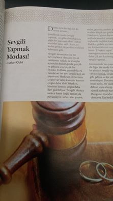 Sevgili‘ denen olay ise bir nevi ‘eş/koca‘ olmanın bir alt versiyonu. Ahlaki ve inançlar açısından bakıldığında gençlik ve gelecek için büyük bir fiyasko. Evlilikte yaşanabilecek neredeyse her şey, sevgili iken de yaşanıyor. Herkesin bir kırmızı çizgisi var tabii; kiminin kırmızı çizgisi daha ‘elde’ biterken, kiminin kırmızı çizgisi ‘bacak arasına’ kadar gidebiliyor. ‘sevgili’ olunca sadece hayat değil; zaman da paylaşılıyor: sırlar, aile, yaşam, sözler, gelecek planları, geçmiş ve daha bir çok şey paylaşılıyor. Erkeklerin ‘göster dayına’ şeklinde ataerkil yetiştiği bir toplumda özellikle kadınların ilişkiler girdabı içerisinde çok şey kaybettiklerini vurgulamak lazım. ‘Erkektir yapar’ yanlış mantığının sonucu kadınların daha çok şey kaybettiği bir olay: sevgili yapmak…