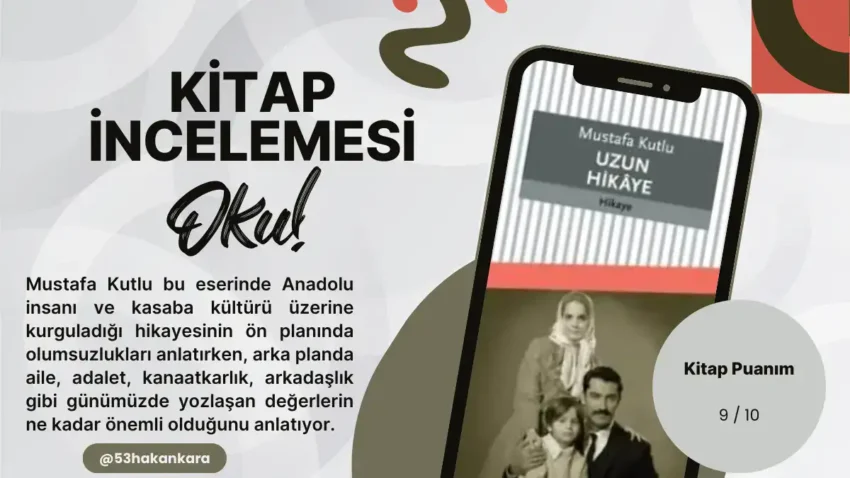 Uzun Hikaye adlı eser yazar Mustafa Kutlu tarafından kaleme alınmış, Dergah Yayınları tarafından okuyucuyla buluşturulmuş, adı üzere bir hikaye – öykü kitabının adıdır. İlk baskısını 2000 yılında yapan eserin elimde 77. baskısı olan Kasım 2023 tarihli nüshası yer almakta. Mustafa Kutlu Dizisi – 14 şeklinde kodlanan eser ülkemizde hikaye (öykü) türünde en çok okunanlar arasında yer alıyor (en çok okunan kitaplar arasında da ilk 100’e girmeye aday). Toplam 2 bölümden oluşan eserin kapak tasarımı yazarın kendisine ait. Kapakta yer alan fotoğrafta ünlü oyuncular Kenan İmirzalıoğlu ve Tuğçe Kazaz yer alıyor. Kitabı güvenilir kitap siteleri üzerinde yaklaşık 59 TL gibi bir fiyata satın alabilirsiniz.